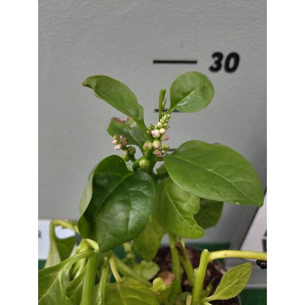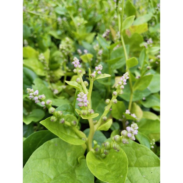 Basella is a climbing plant and the alba is completely green in color, both stems and leaves. The inflorescence are white and also edible.
