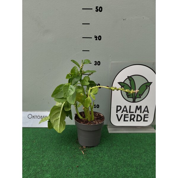 The Basella is a climbing plant and grows more than two meters in one season if it is nice and warm and moist. If the plant is planted in the ground, it is an annual plant and freezes to death in the winter.