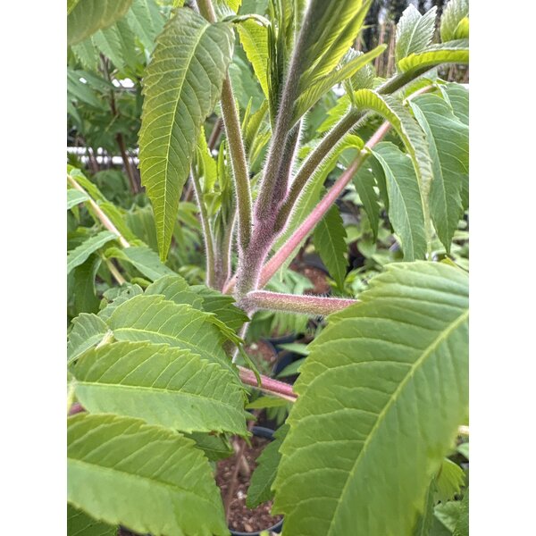 The value of this tree lies in its flowering in the summer. The red color of the flowers contrasts beautifully with the green leaves of the Rhus. When the plant has finished flowering, the fruits retain the same shape as the flowers previously had. These cone-shaped fruits stand upright on the often overhanging branches of the plant. The fruits themselves have an unpleasant taste, and this is where the Rhus gets its other name: the vinegar tree.