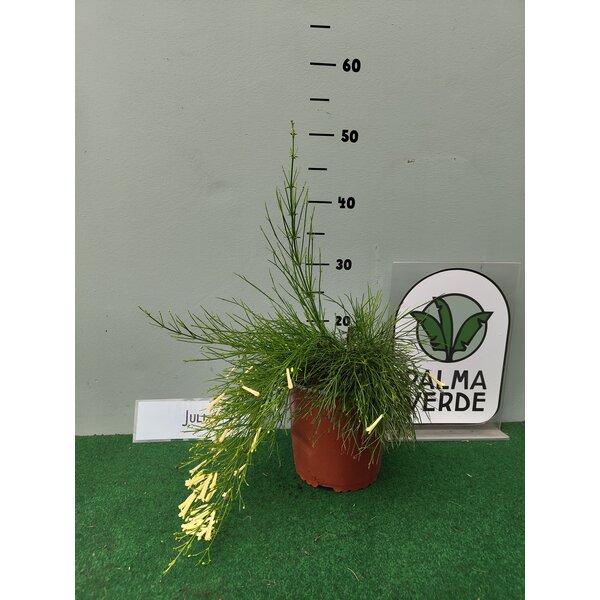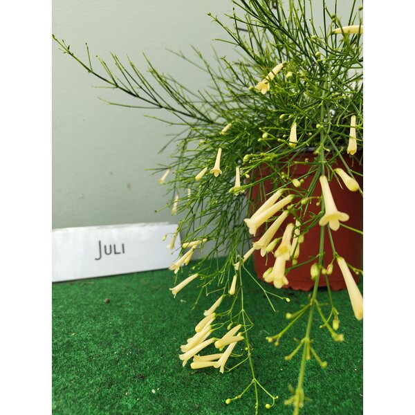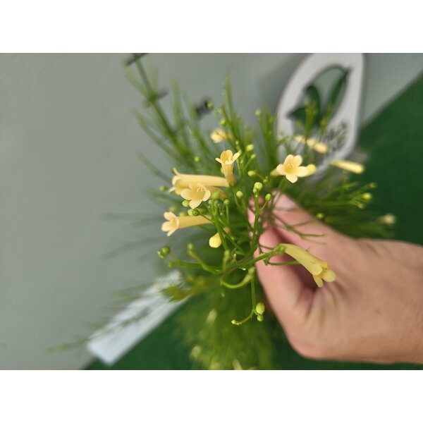 It produces slender, cascading stems that can trail up to a metre in length, creating a waterfall-like effect. Instead of broad leaves, Russelia develops small, scale-like structures, giving it an airy, bamboo-like appearance. From spring to late autumn, it bursts into bloom with countless scarlet-red tubular flowers – like a fountain of miniature fireworks.