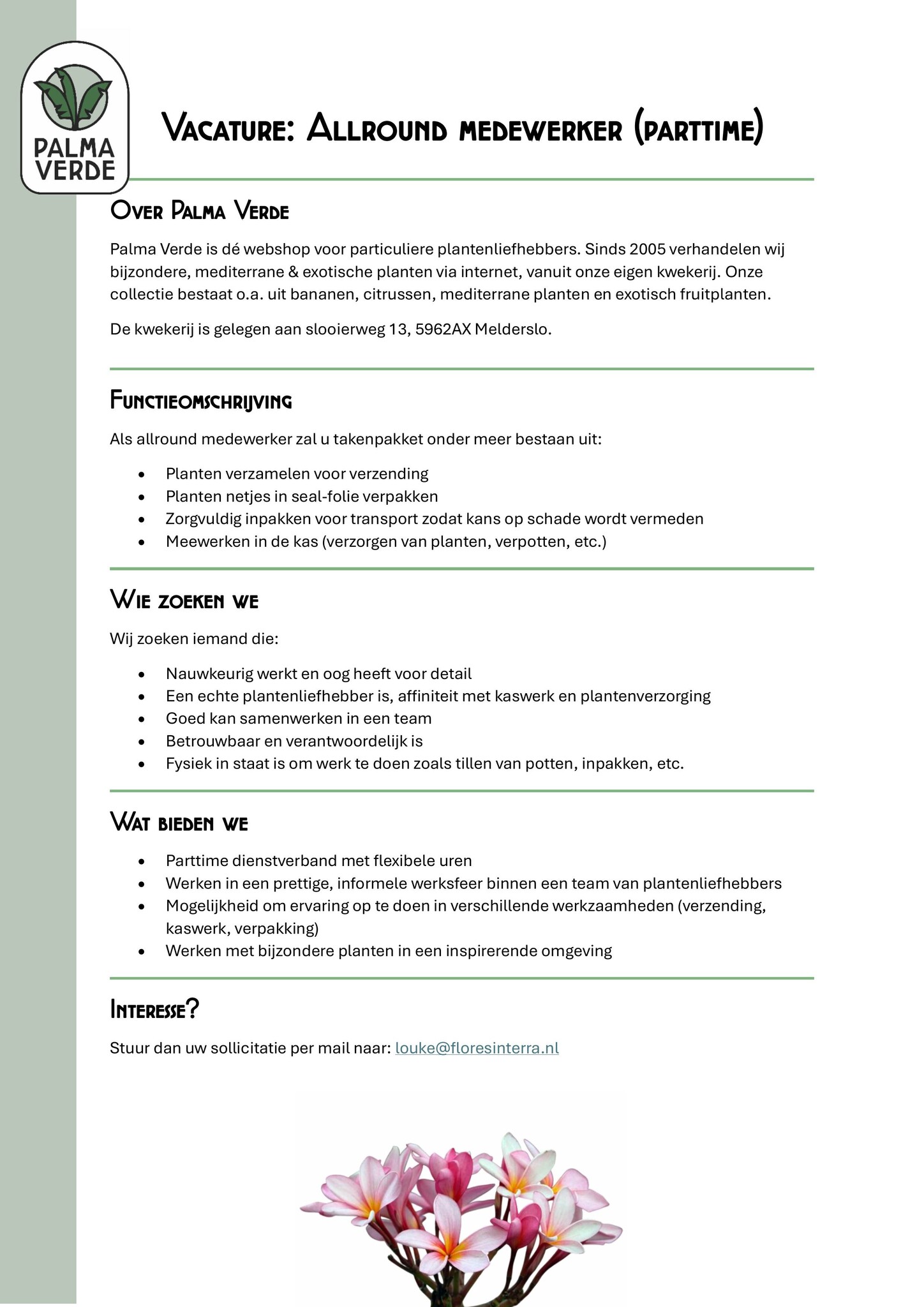 Vacature: Allround medewerker (parttime)