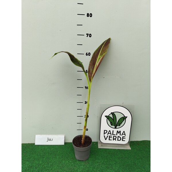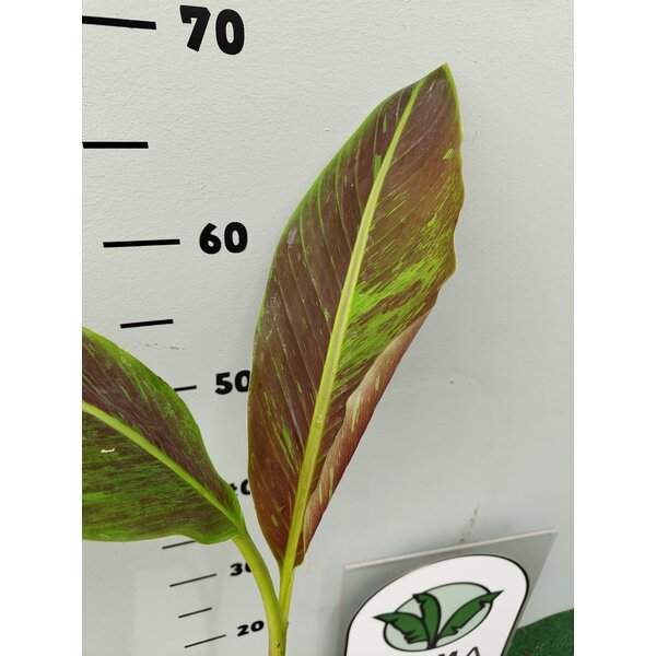 La Musa siam Ruby est une variété de bananier remarquable, spécialement sélectionnée et cultivée en raison de ses caractéristiques distinctives. La plante possède de grandes feuilles larges d'une couleur rouge foncé à pourpre, ce qui lui donne un aspect impressionnant. Elle peut atteindre une hauteur d'environ 3-4 mètres, selon les conditions de croissance. Le tronc est robuste et la plante forme un buisson compact de feuilles.